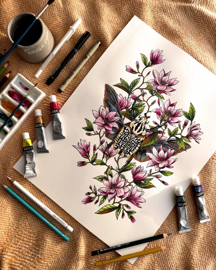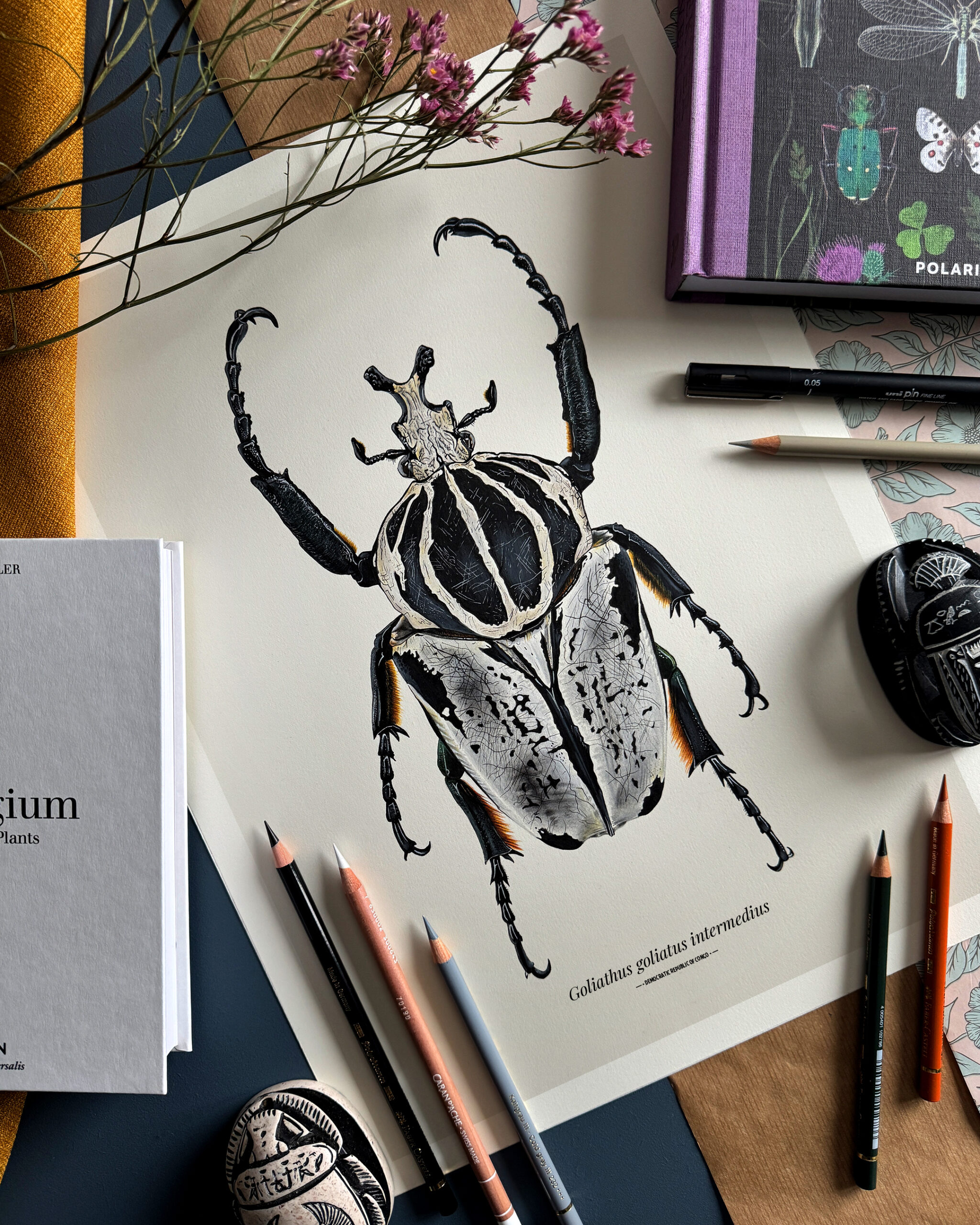 Beetle and Leaf is the work of Grant Menzies, a designer and illustrator devoted to the details of the natural world — insects, flora, fauna, and everything in between. Each piece is driven by a deep fascination with nature’s complexity, from the intricate forms of beetles to the vibrant beauty of blooming flowers.