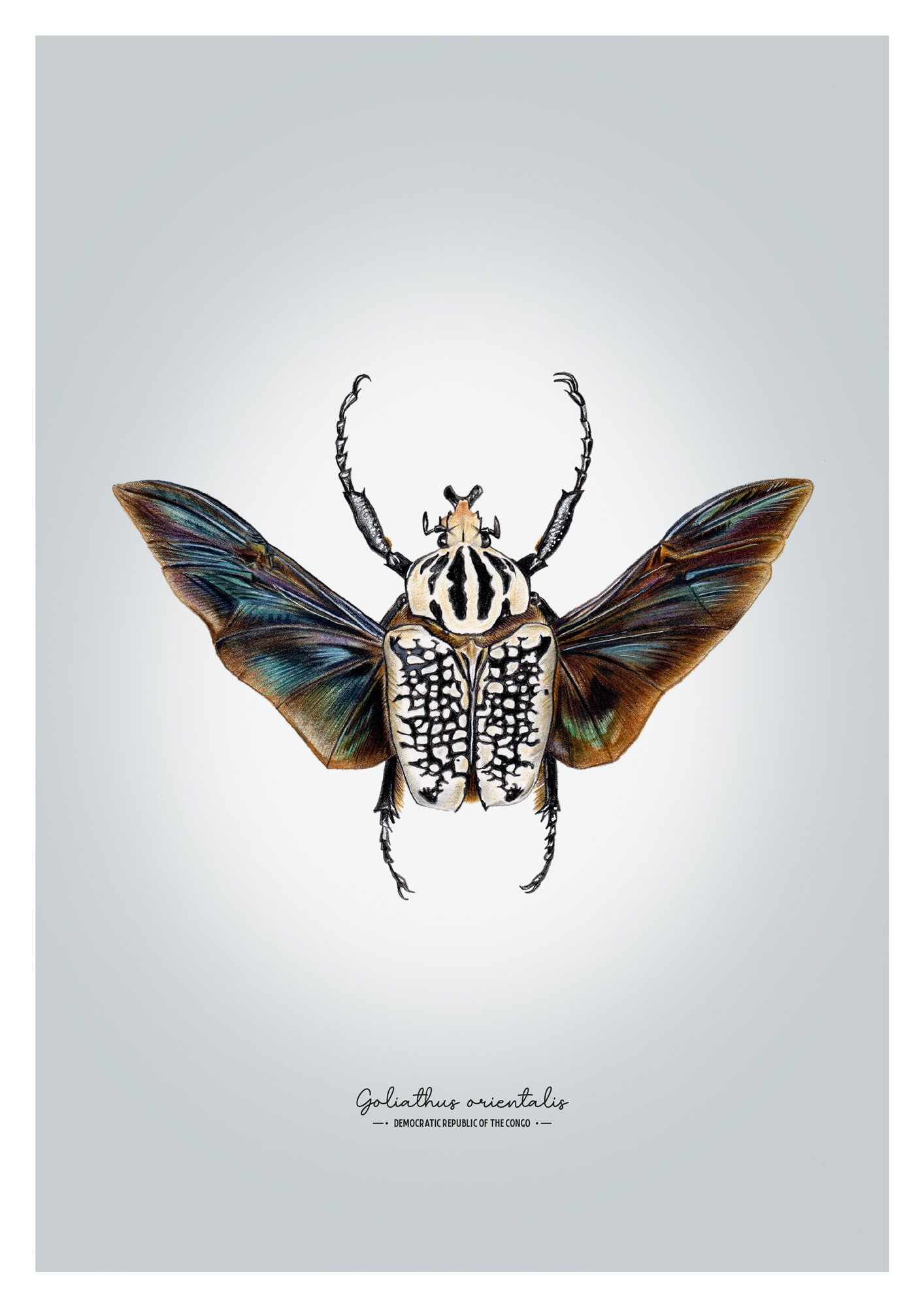 This artwork is crafted from my personal collection of sustainably sourced insects, serving as direct inspiration for my illustrations, resulting in truly distinctive artwork.